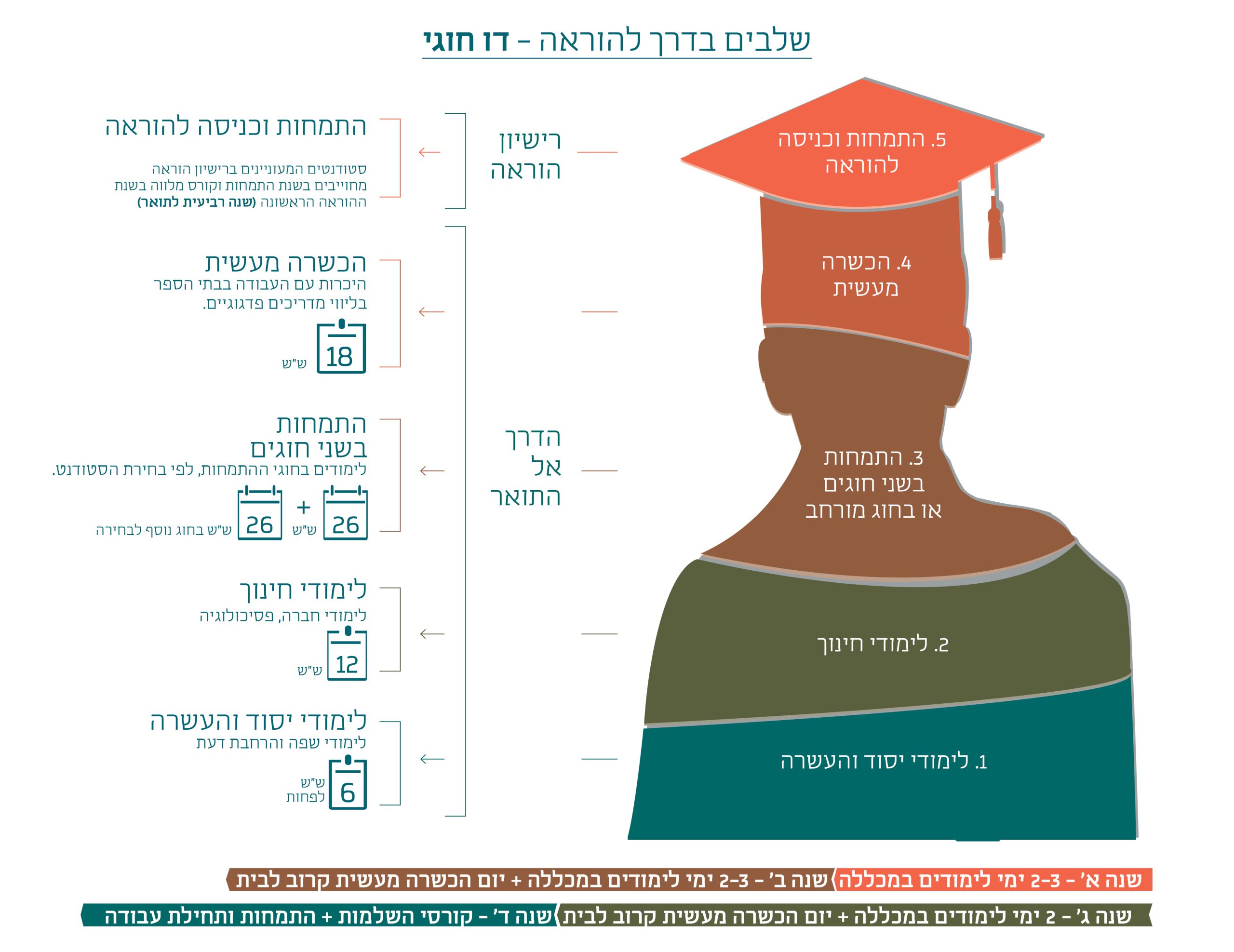 הלימודים לתוארEd.B ותעודת הוראה ימשכו על פני כשנתיים וחצי. כללי משרד החינוך