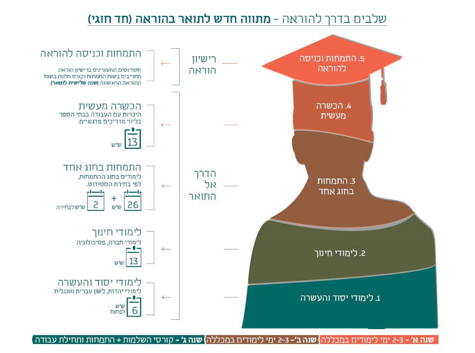 היחס האישי המוענק לכל סטודנט מבטיח שהמסע האקדמי יהיה מקצועי, חווייתי ומעשיר, עם דגש על פיתוח מיומנויות הוראה רב תחומיות והבנה עמוקה של החומר.